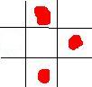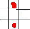 Os pontos vermelhos são os habbos, as linhas fazem os quadrados do chão, como no jogo.